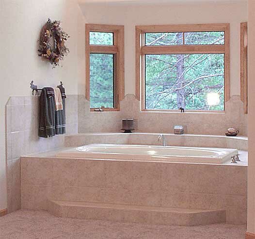 Master bath detail of the "Paoletti" Model P-801 walk-out house plan. Remember, you can easily add your own design touches to this walkout house plan. Optional design changes are very reasonably priced! Just ask!